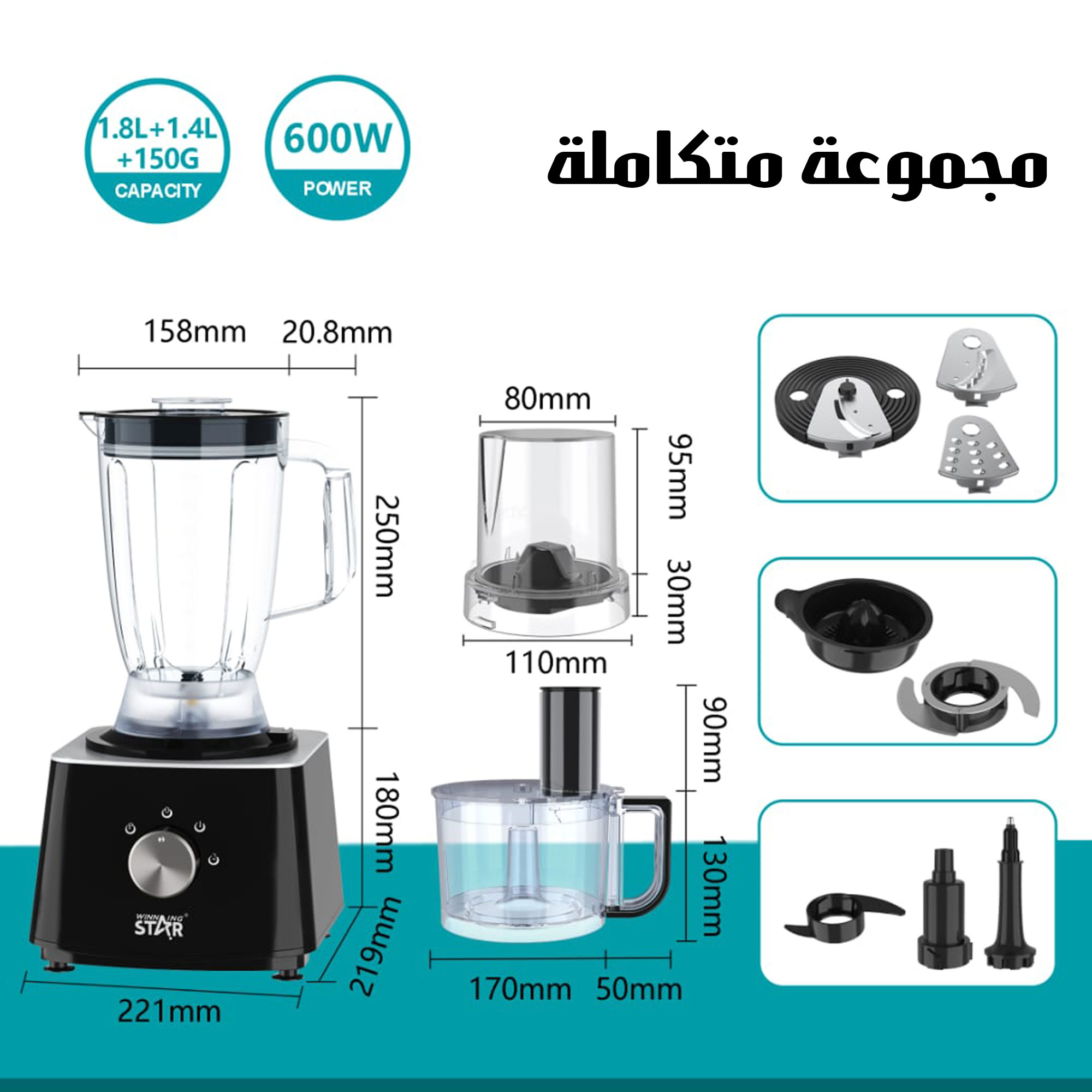 طقم مطبخ ١٠ في ١ العملى 600 واط خلاط و كبة و مفرمة بضمان عام